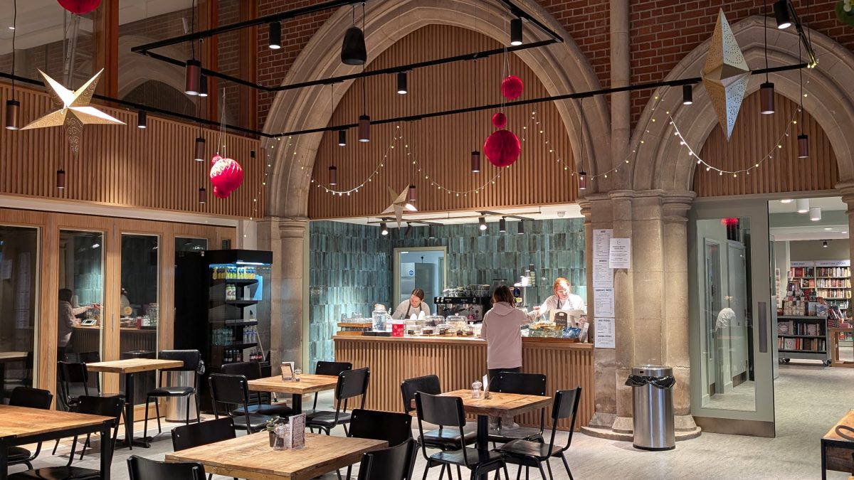 We introduced three full height glazed openings facing onto Jubilee Square, and reconfigured and refurbished the cafe to create a warm welcome for visitors, with direct access to a new community bookshop.